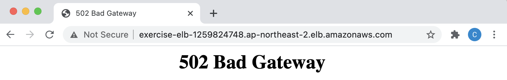 이후 로드 밸런서 DNS 주소로 접속하면 아래와 같이 에러 화면을 볼 수 있습니다.